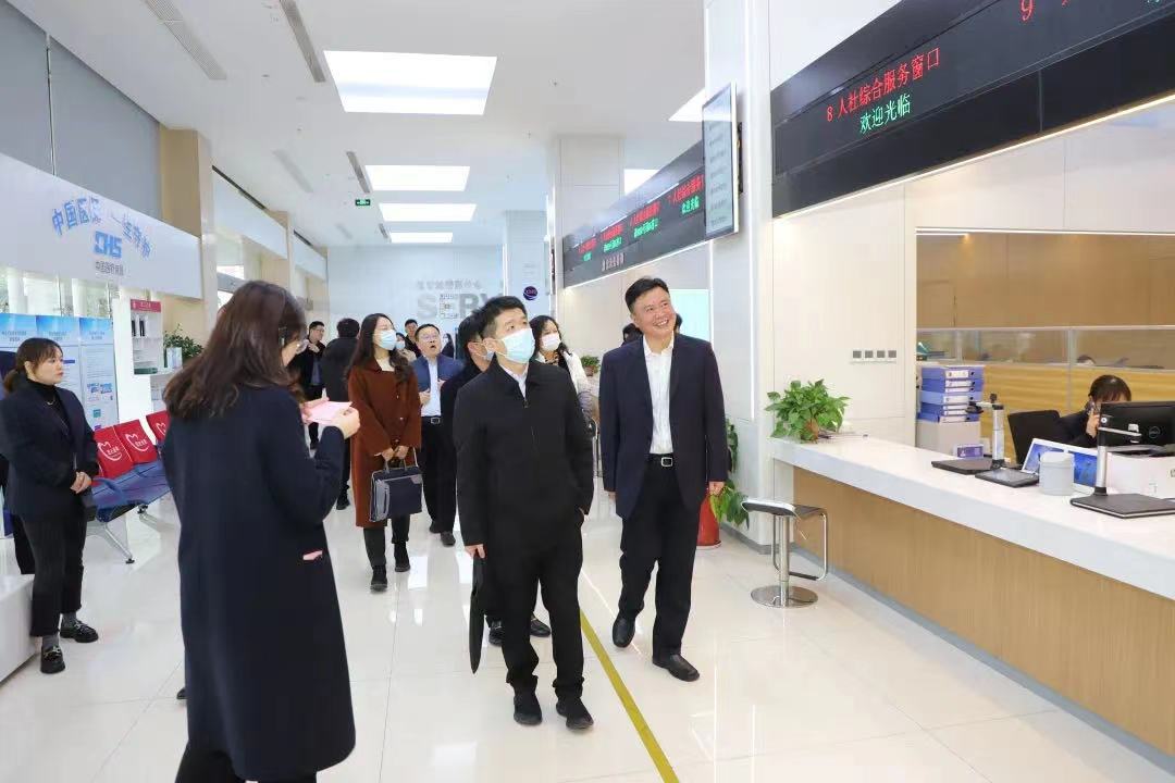 调研组一行实地考察了孤山镇为民服务中心,听取了人社综合服务窗口和业务开展情况介绍,观看了靖江市人社基层平台宣传展示片,并就“家门口”就业服务进行现场座谈。