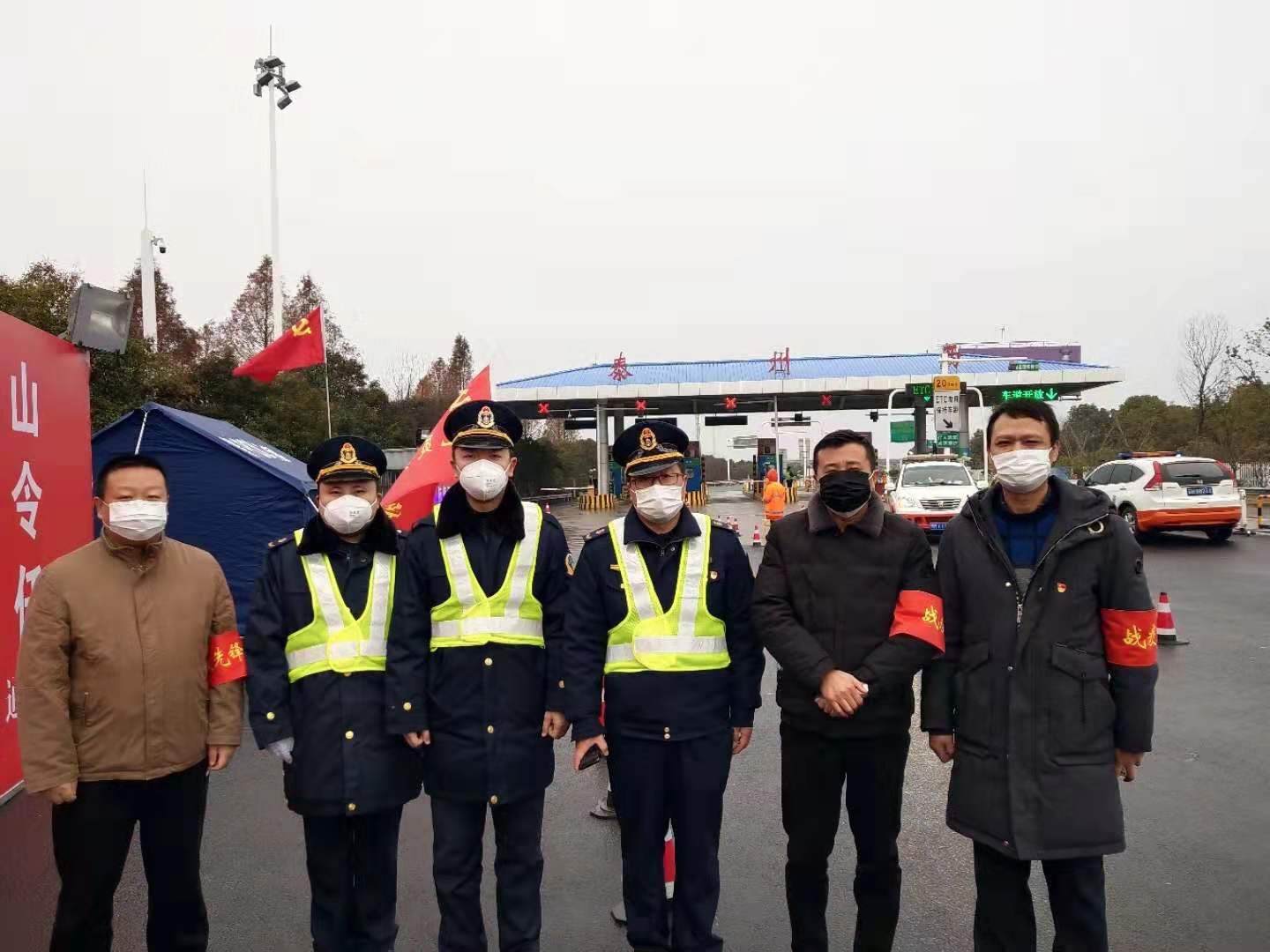 2月7日,市人社局第一批突击队分三组在S28启扬高速泰州西收费站出口参与值守。突击队在卡口处开展防疫基本常识宣传,协助做好车辆检查、体温检测、人员登记、群众疏导服务等工作,真正做到让党旗在防控第一线高高飘扬,构筑起严防疫情输入的坚固防线。市人社局副局长、机关党委书记乔和平同志也亲临现场进行督查,一同参与值守,嘱咐突击队在圆满完成工作任务的同时,也要注意做好个人防护,凝心聚力,坚决打赢防疫阻击战。